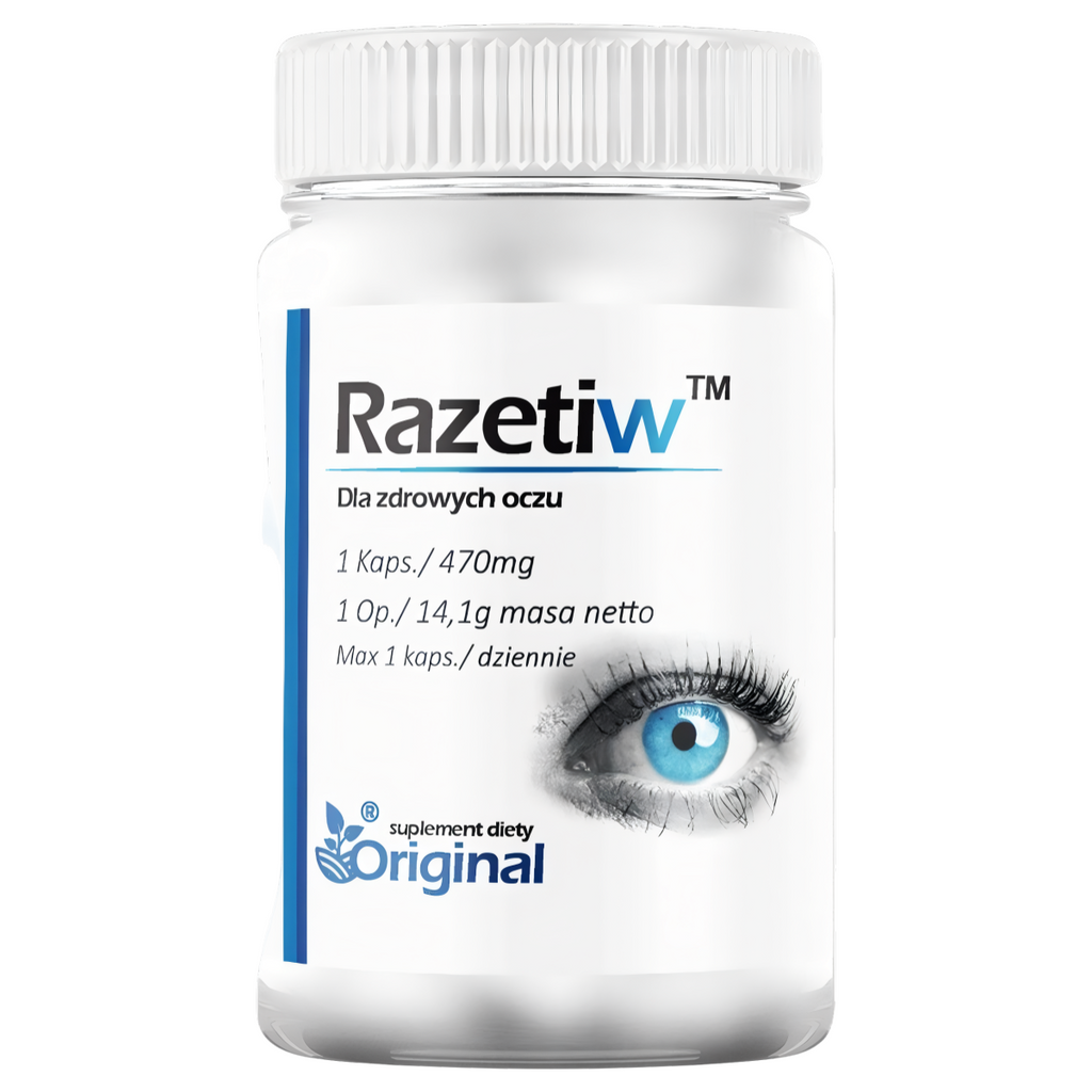 RAZETIW jest dostępny w postaci tabletek. Kapsułki zawierają duże ilości kluczowych składników odżywczych i przyjmowane jako takie mogą szybko wspomagać widzenie od wewnątrz,